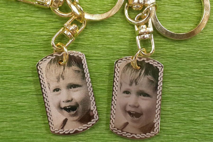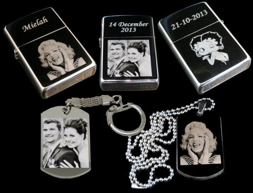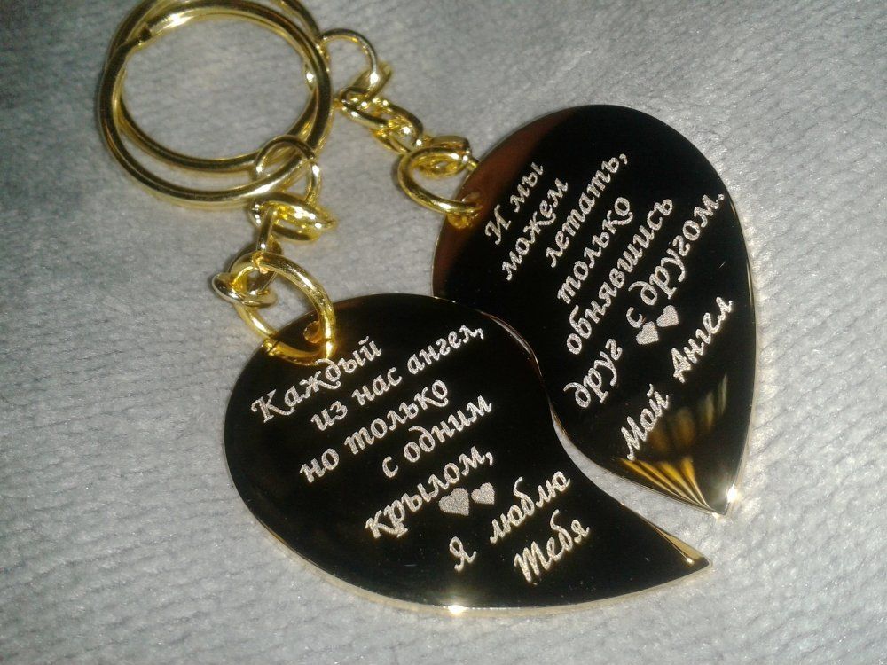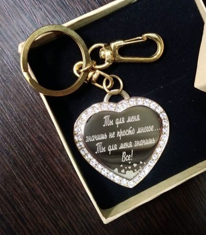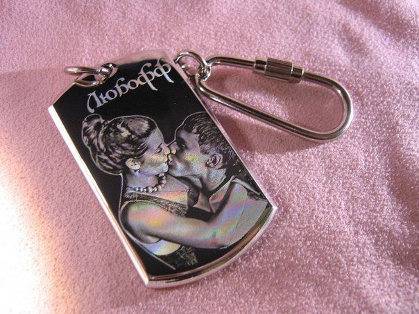 Уникальность подарку придаст гравировка фотографии, рисунока или послания на кулоне, брелке, визитнице, зажигалке.